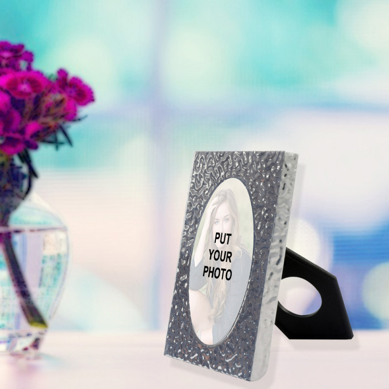 Showcase your treasured memories in this hammered silver finish Oval frame. Ideally suited for gifting or interiors both classic and contemporary, this delightful picture frame comes with fittings that make it freestanding.