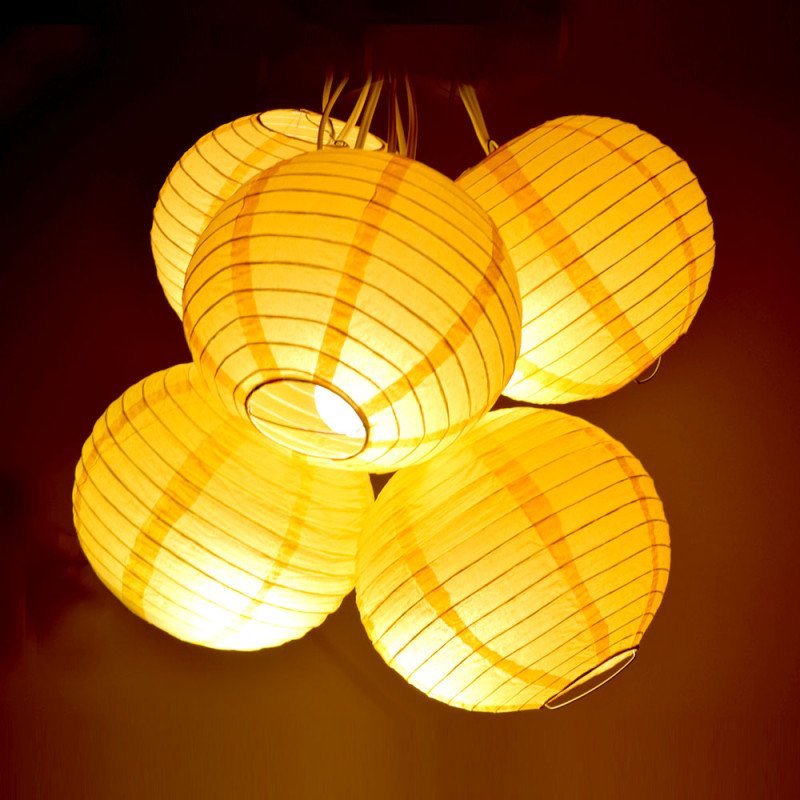 Yellow Printed Paper Lamps/ Lantern (A Set Of 5) .