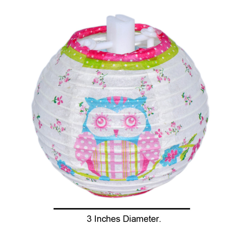 Flower & cute Owl Printed Paper Lamps/ Lantern (A Set Of 10) with a Led Multicolor LED String Lights. Size: 3 Inches Diameter