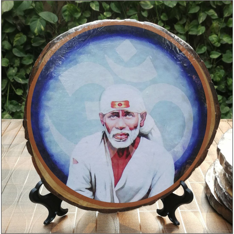 One inch thick and with an eight-inch diameter, these tree trunk slices with Shri Shirdi Sai's image make for a beautiful addition to any home decor.